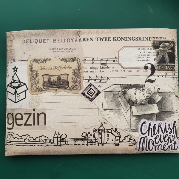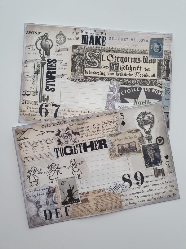Hieronder een paar voorbeelden van enveloppen gemaakt met art collage.