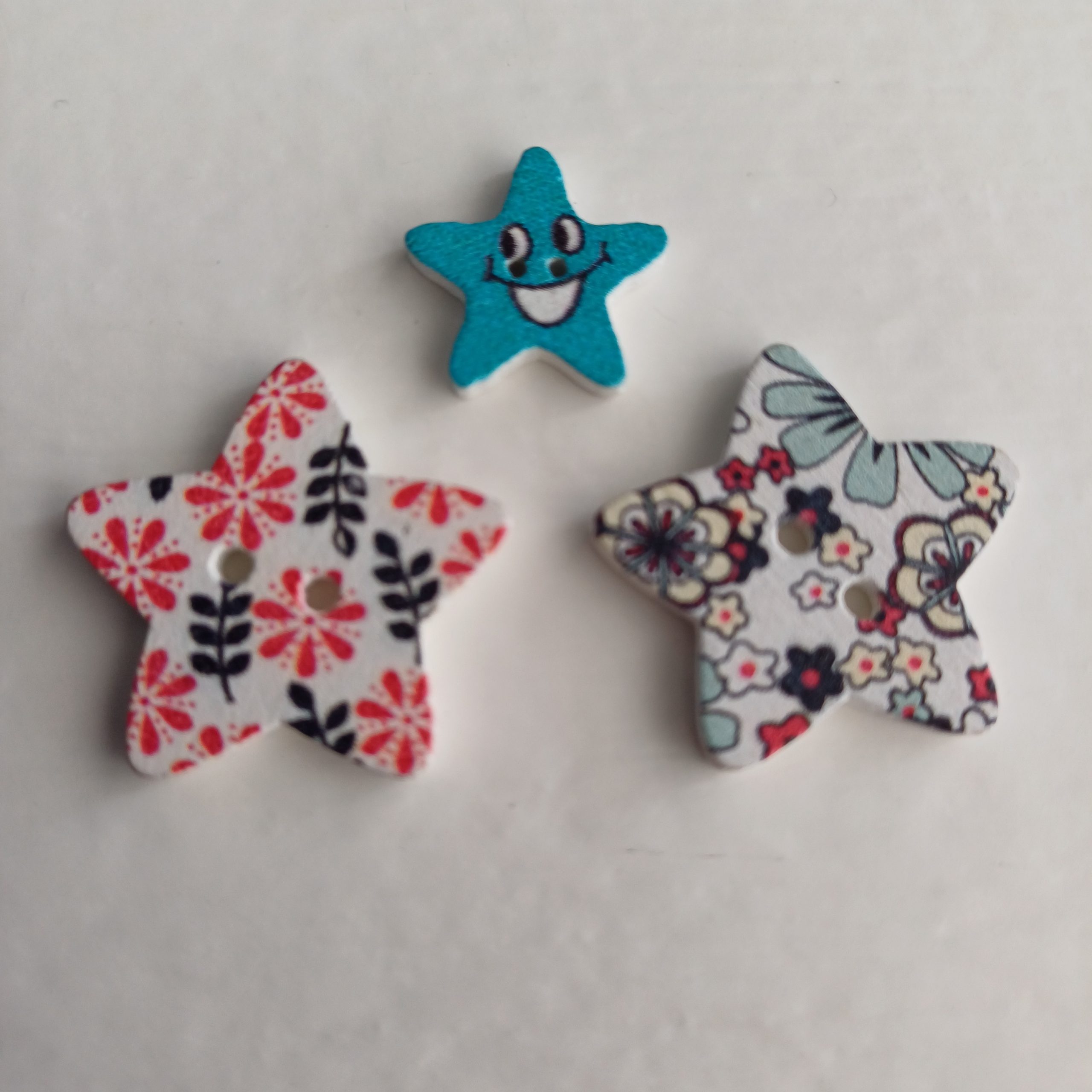 Houten knopen sterren 3 stuks