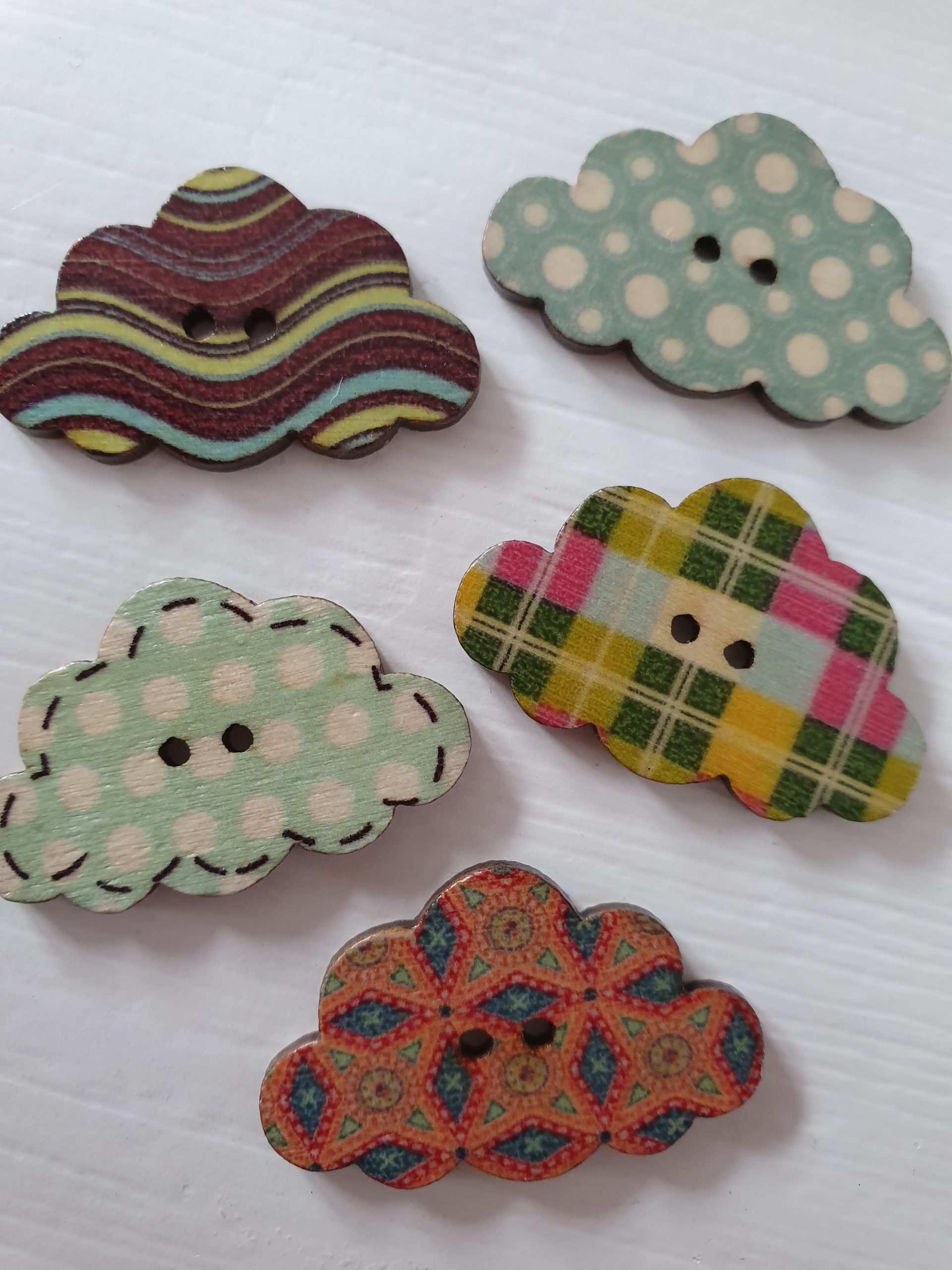 Houten knopen wolken 5 stuks