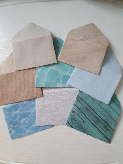 Handgemaakte mini enveloppen van leuk beach printpapier