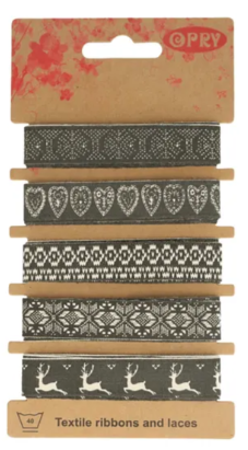 Deze set bevat 5 bandjes met verschillende op elkaar afgestemde ontwerpen. Ze zijn bedrukt met verschillende patronen, teksten of motieven. De band kan worden gebruikt voor verschillende decoraties en voor het knutselen. Kleding, accessoires en textiel kunnen met deze band worden versierd en krijgen daardoor een persoonlijke touch. De band is 15mm breed en 1 meter lang.