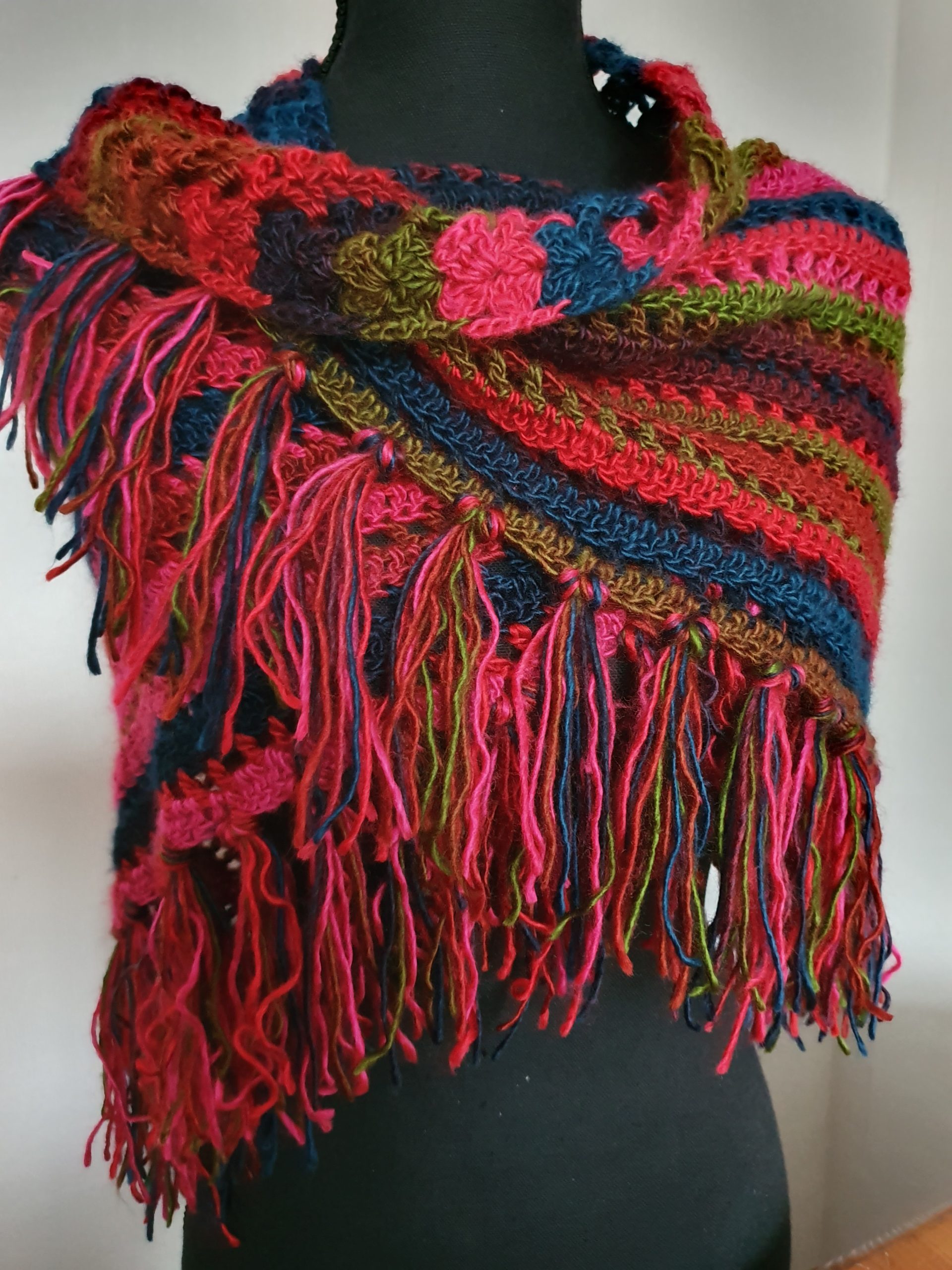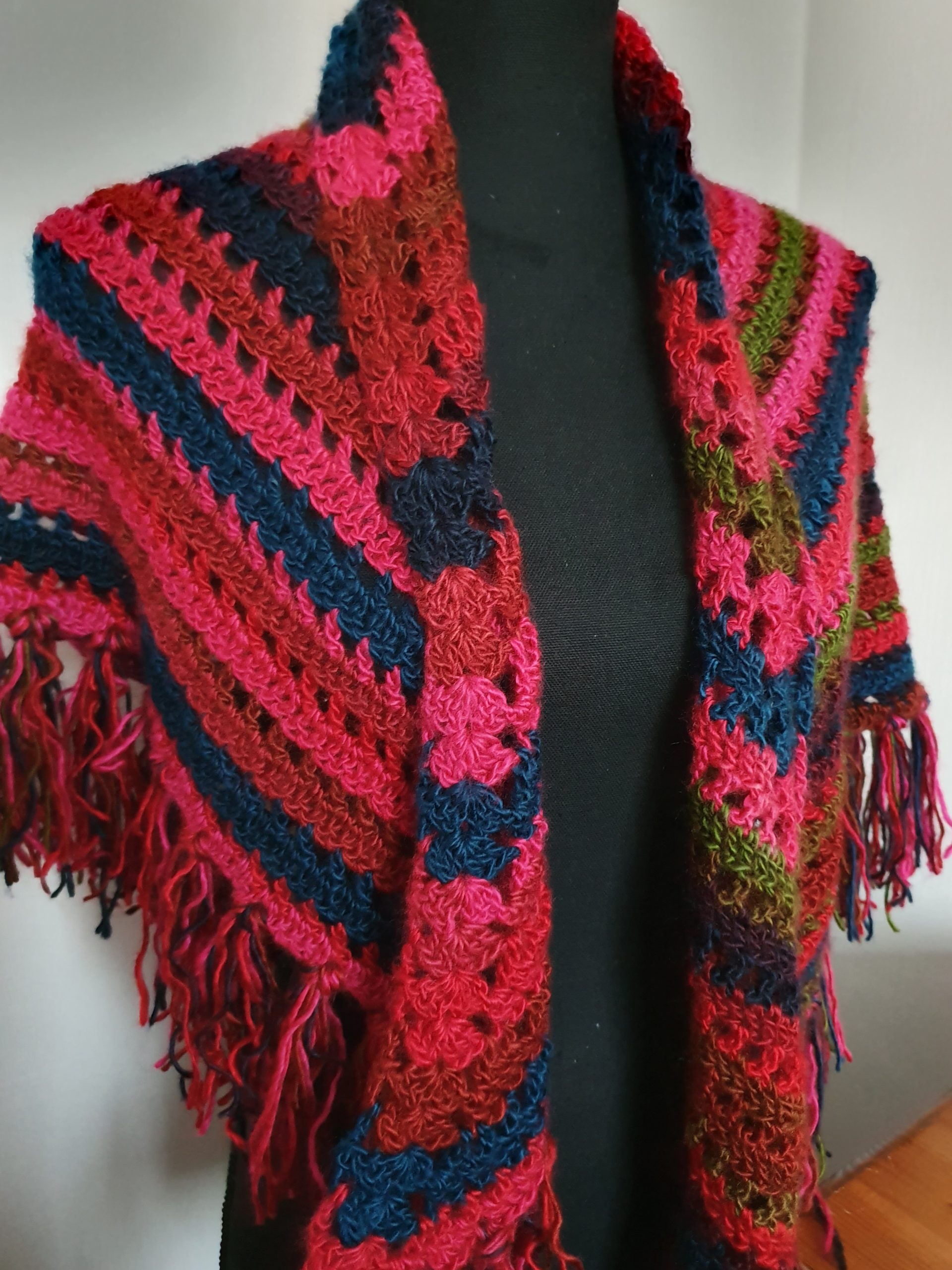 Rode blauwe omslagdoek met franjes