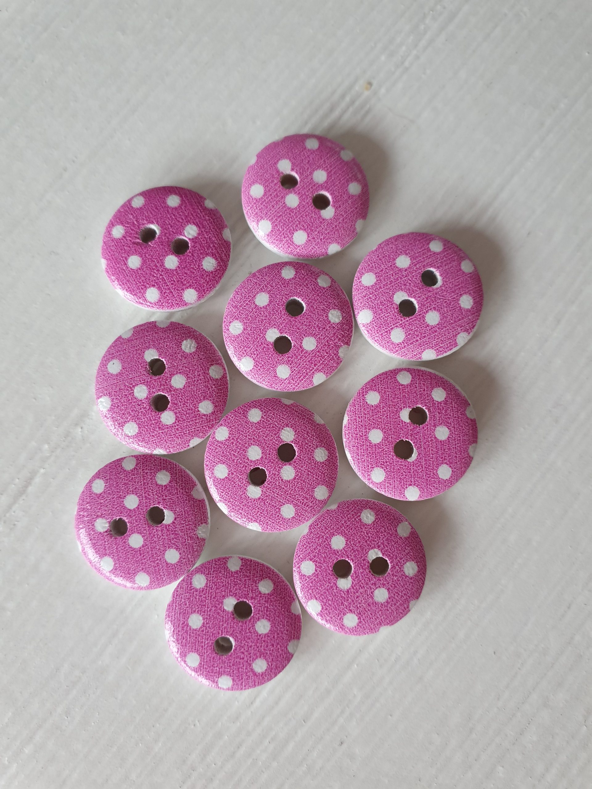 Houten knopen roze met witte stippen