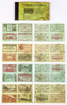 Tickets boekje papier retro stamps set E